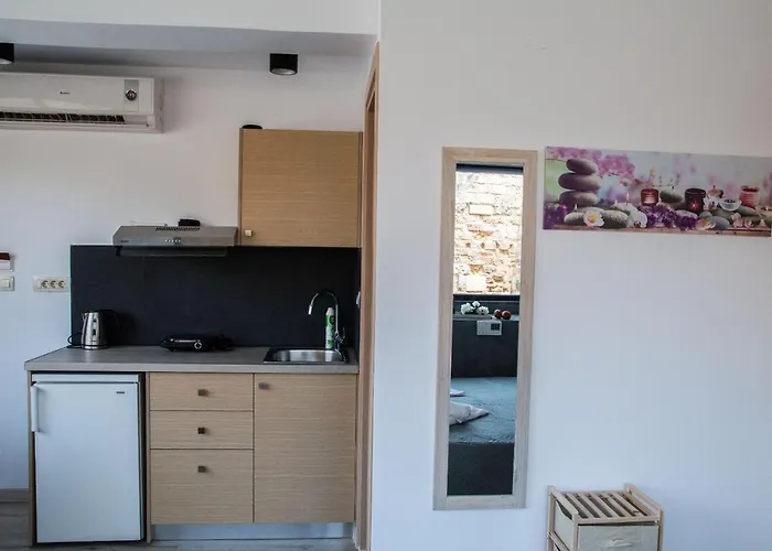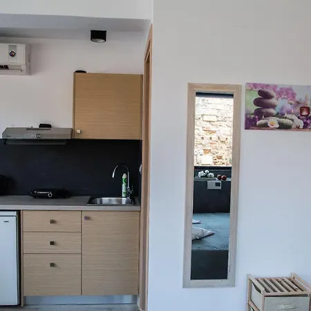 Il y a une kitchenette avec un micro-ondes et un réfrigérateur pour un séjour confortable au quotidien. Tamam Restaurant, qui sert des plats européens, est à 15 minutes de marche. L'aéroport le plus proche est international de La Canée, à 15 km de Kastren Rooms, et l'arrêt de bus Ethniki Trapeza est à 10 minutes à pied.